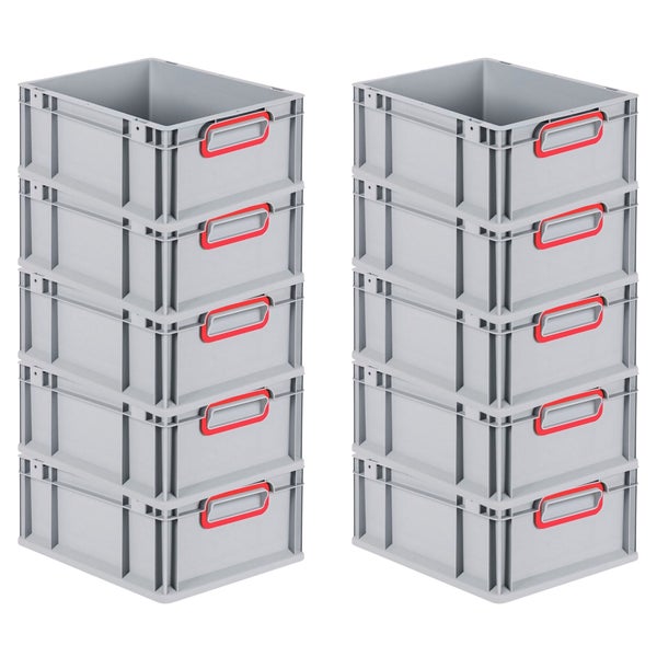 PROREGAL Spar Set 10x Eurobox Nextgen Color HxBxT 17 x 30 x 40 cm 16 Liter Griffe Rot Geschlossen Glatter Boden Eurobehälter Transportbox