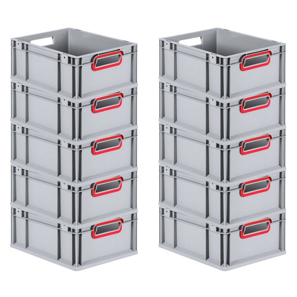 PROREGAL Spar Set 10x Eurobox Nextgen Color HxBxT 17 x 30 x 40 cm 16 Liter Griffe Rot Offen Glatter Boden Eurobehälter Transportbox