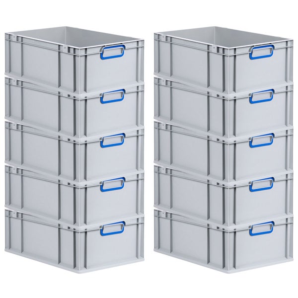 PROREGAL Spar Set 10x Eurobox Nextgen Color HxBxT 22 x 40 x 60 cm 44 Liter Griffe Blau Geschlossen Verstärkter Boden Eurobehälter Transportbox