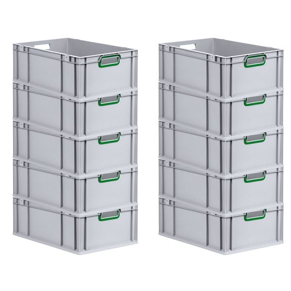 PROREGAL Spar Set 10x Eurobox Nextgen Color HxBxT 22 x 40 x 60 cm 44 Liter Griffe Grün Offen Verstärkter Boden Eurobehälter Transportbox