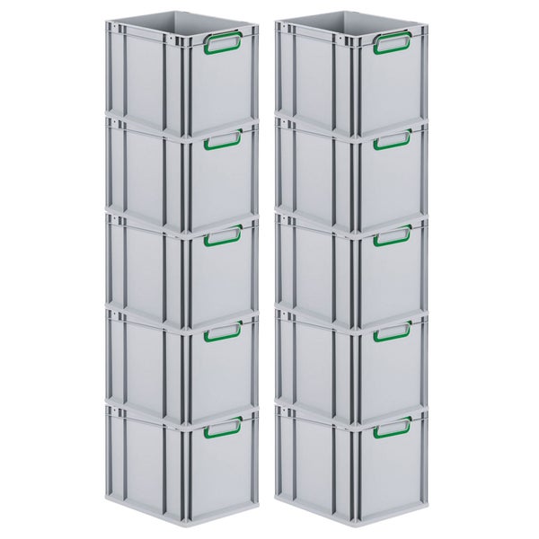 PROREGAL Spar Set 10x Eurobox Nextgen Color HxBxT 32 x 30 x 40 cm 30 Liter Griffe Grün Geschlossen Glatter Boden Eurobehälter Transportbox
