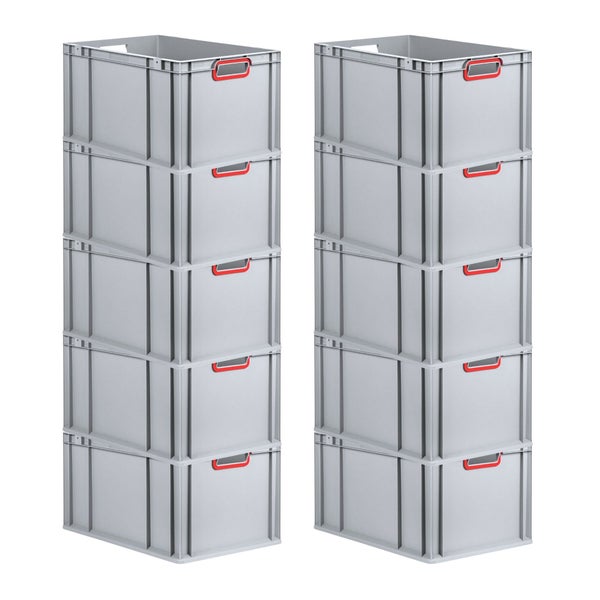PROREGAL Spar Set 10x Eurobox Nextgen Color HxBxT 32 x 40 x 60 cm 65 Liter Griffe Rot Offen Verstärkter Boden Eurobehälter Transportbox