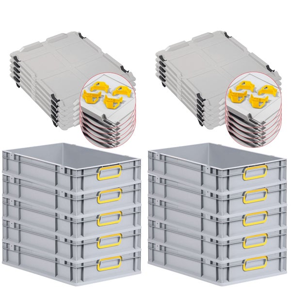 PROREGAL Spar Set 10x Eurobox Nextgen Color Mit Auflagedeckel & Schiebeschnappverschlüsse HxBxT 12 x 40 x 60 cm Griffe Gelb Geschlossen Glatter Boden