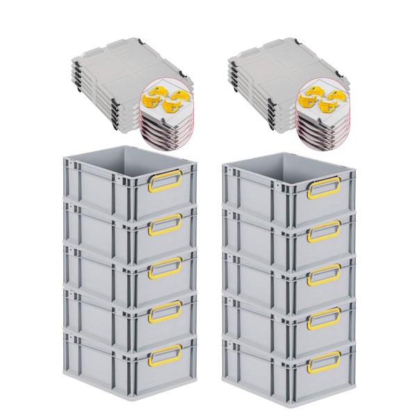 PROREGAL Spar Set 10x Eurobox Nextgen Color Mit Auflagedeckel & Schiebeschnappverschlüsse HxBxT 17 x 30 x 40 cm Griffe Gelb Geschlossen Glatter Boden