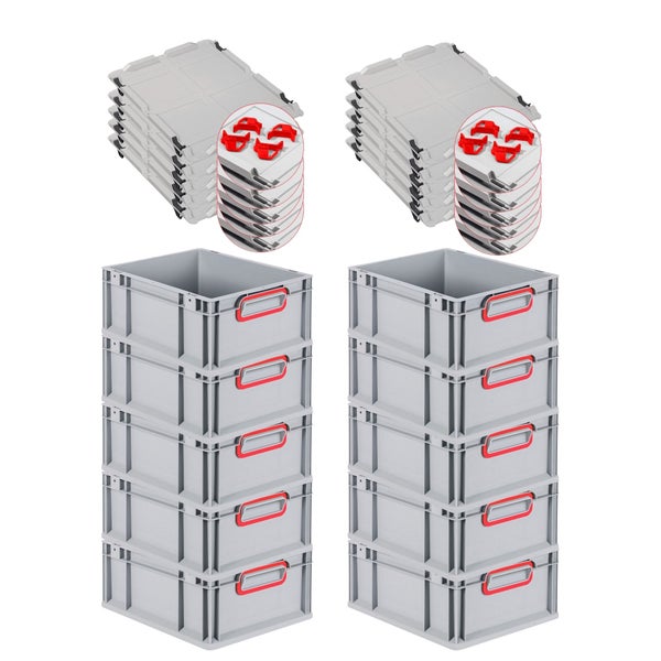 PROREGAL Spar Set 10x Eurobox Nextgen Color Mit Auflagedeckel & Schiebeschnappverschlüsse HxBxT 17 x 30 x 40 cm Griffe Rot Geschlossen Glatter Boden