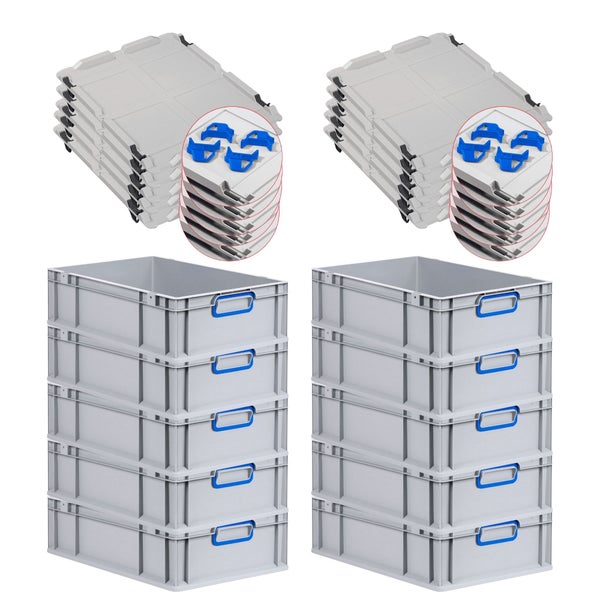 PROREGAL Spar Set 10x Eurobox Nextgen Color Mit Auflagedeckel & Schiebeschnappverschlüsse HxBxT 17 x 40 x 60 cm Griffe Blau Geschlossen Glatter Boden