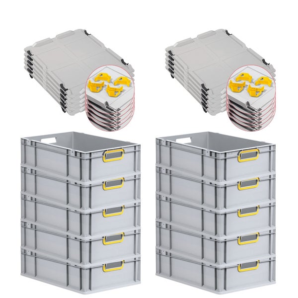 PROREGAL Spar Set 10x Eurobox Nextgen Color Mit Auflagedeckel & Schiebeschnappverschlüsse HxBxT 17 x 40 x 60 cm Griffe Gelb Offen Glatter Boden