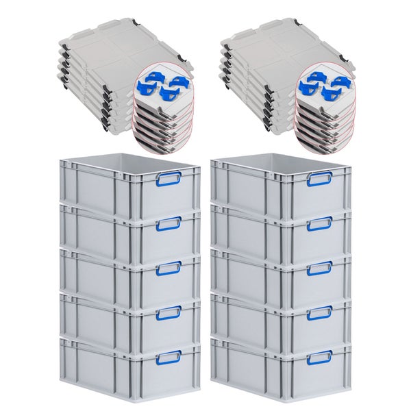 PROREGAL Spar Set 10x Eurobox Nextgen Color Mit Auflagedeckel & Schiebeschnappverschlüsse HxBxT 22 x 40 x 60 cm Griffe Blau Verstärkter Boden