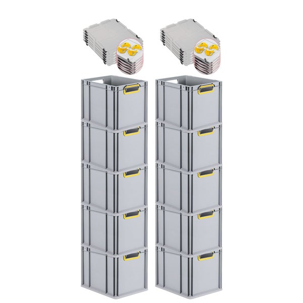 PROREGAL Spar Set 10x Eurobox Nextgen Color Mit Auflagedeckel & Schiebeschnappverschlüsse HxBxT 32 x 30 x 40 cm Griffe Gelb Offen Glatter Boden