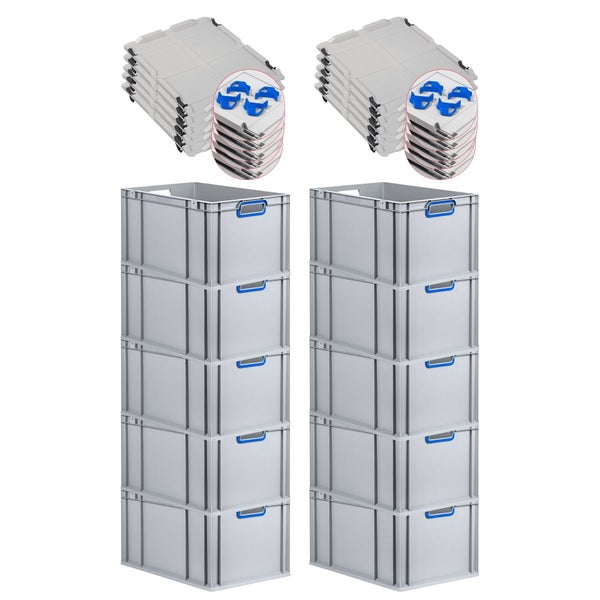 PROREGAL Spar Set 10x Eurobox Nextgen Color Mit Auflagedeckel & Schiebeschnappverschlüsse HxBxT 32 x 40 x 60 cm Griffe Blau Offen Verstärkter Boden