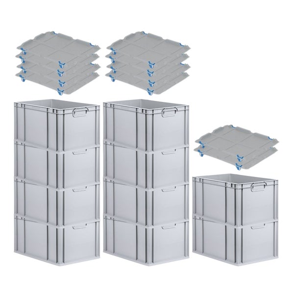 PROREGAL Spar Set 10x Eurobox Nextgen Economy Mit Auflagedeckel & 4x Schiebeschnappverschlüsse Blau Griffe Geschlossen HxBxT 32 x 40 x 60 cm 65 Liter