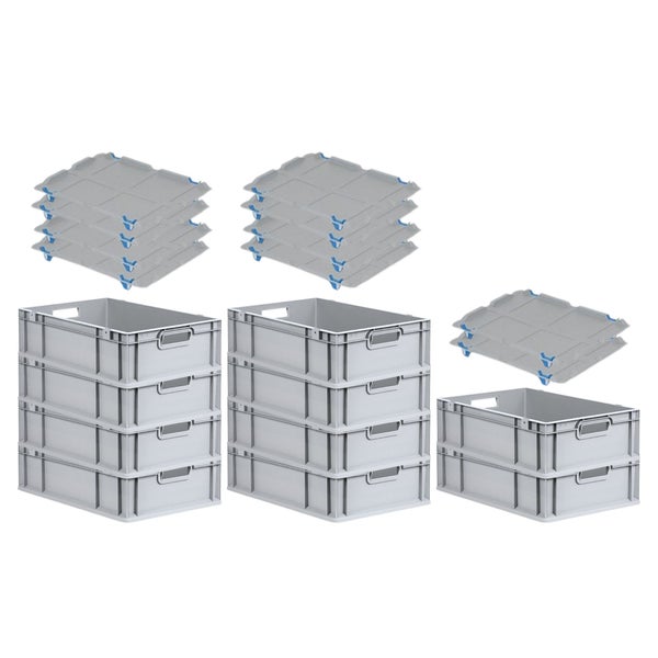 PROREGAL Spar Set 10x Eurobox Nextgen Economy Mit Auflagedeckel & 4x Schiebeschnappverschlüsse Blau Griffe Offen HxBxT 17 x 40 x 60 cm 34 Liter