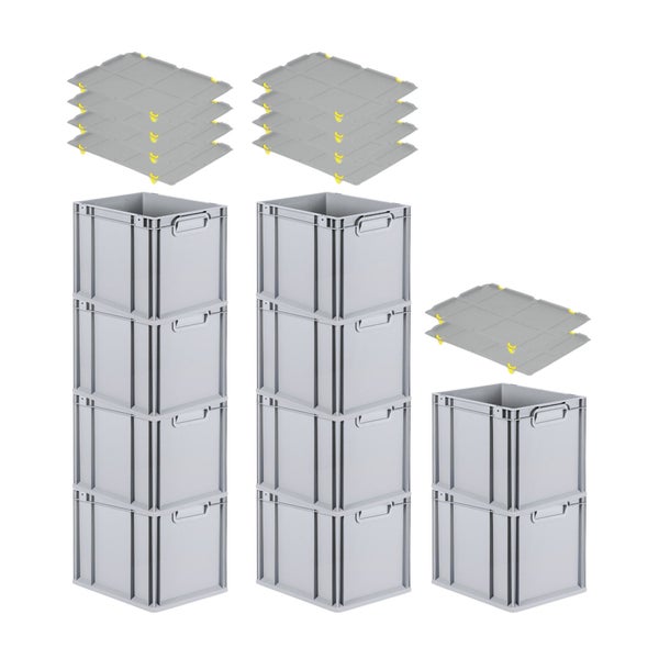 PROREGAL Spar Set 10x Eurobox Nextgen Economy Mit Auflagedeckel & 4x Schiebeschnappverschlüsse Gelb Griffe Geschlossen HxBxT 32 x 30 x 40 cm 30 Liter