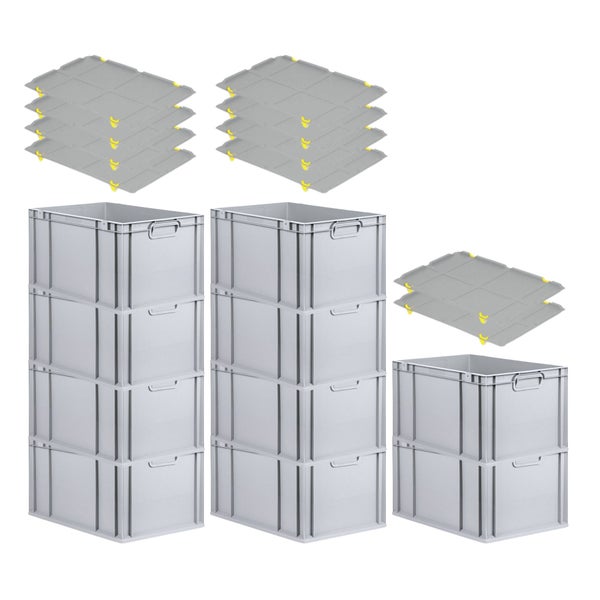 PROREGAL Spar Set 10x Eurobox Nextgen Economy Mit Auflagedeckel & 4x Schiebeschnappverschlüsse Gelb Griffe Geschlossen HxBxT 32 x 40 x 60 cm 65 Liter