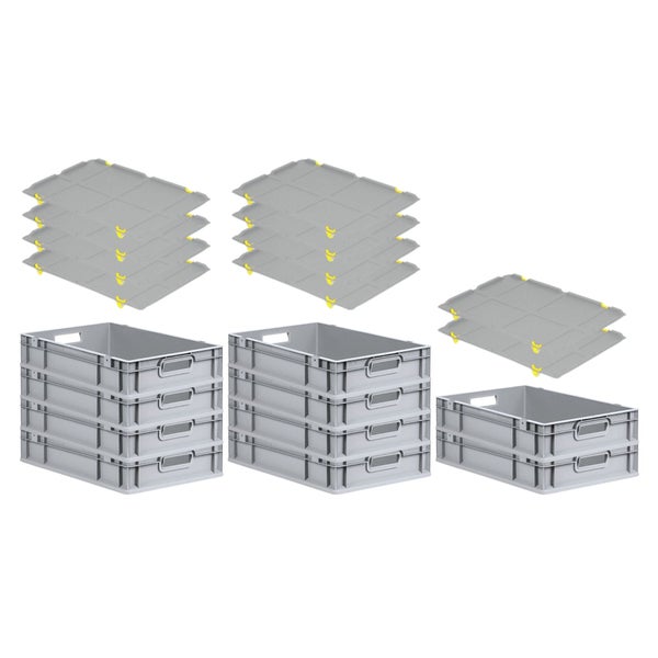 PROREGAL Spar Set 10x Eurobox Nextgen Economy Mit Auflagedeckel & 4x Schiebeschnappverschlüsse Gelb Griffe Offen HxBxT 12 x 40 x 60 cm 23 Liter