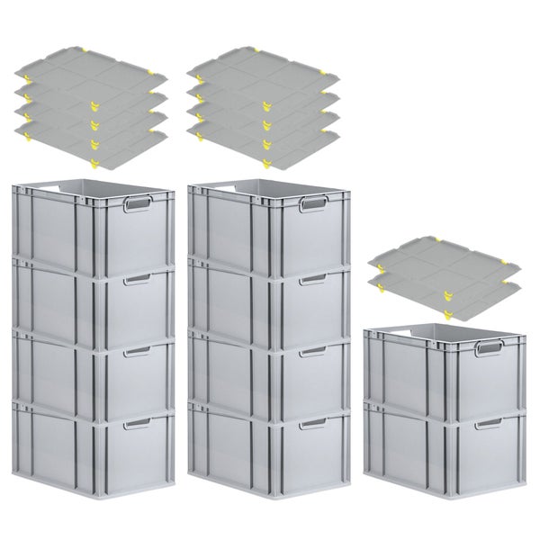 PROREGAL Spar Set 10x Eurobox Nextgen Economy Mit Auflagedeckel & 4x Schiebeschnappverschlüsse Gelb Griffe Offen HxBxT 32 x 40 x 60 cm 65 Liter