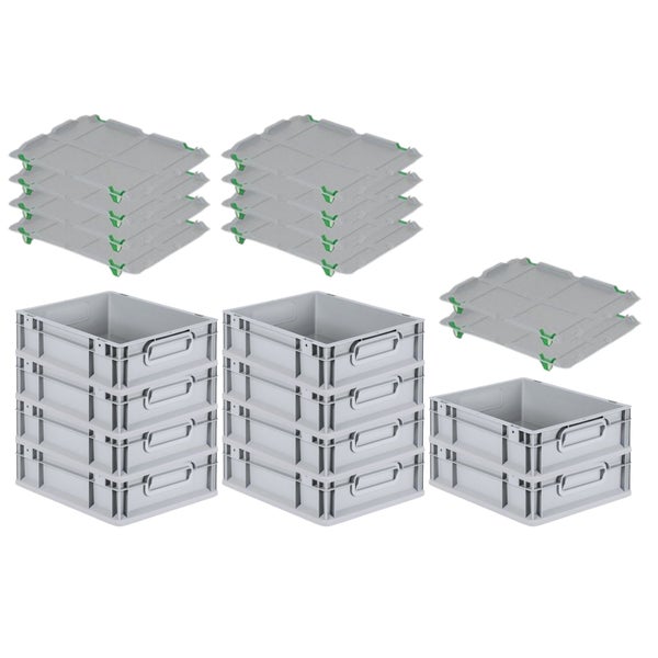 PROREGAL Spar Set 10x Eurobox Nextgen Economy Mit Auflagedeckel & 4x Schiebeschnappverschlüsse Grün Griffe Geschlossen HxBxT 12 x 30 x 40 cm 11 Liter