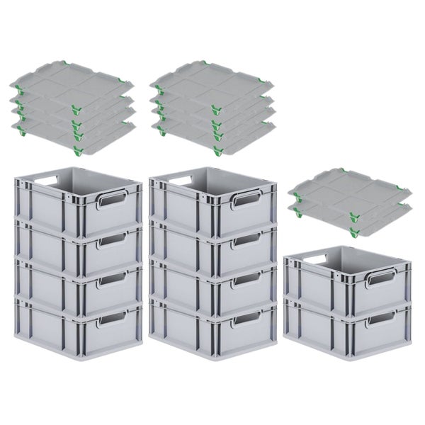 PROREGAL Spar Set 10x Eurobox Nextgen Economy Mit Auflagedeckel & 4x Schiebeschnappverschlüsse Grün Griffe Offen HxBxT 17 x 30 x 40 cm 16 Liter