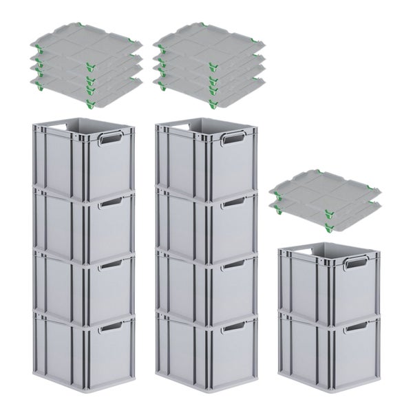 PROREGAL Spar Set 10x Eurobox Nextgen Economy Mit Auflagedeckel & 4x Schiebeschnappverschlüsse Grün Griffe Offen HxBxT 32 x 30 x 40 cm 30 Liter
