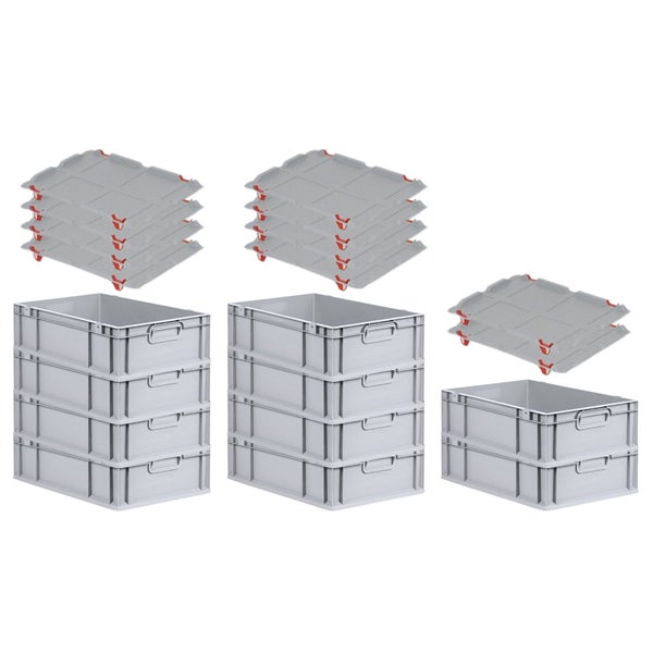 PROREGAL Spar Set 10x Eurobox Nextgen Economy Mit Auflagedeckel & 4x Schiebeschnappverschlüsse Rot Griffe Geschlossen HxBxT 17 x 40 x 60 cm 34 Liter