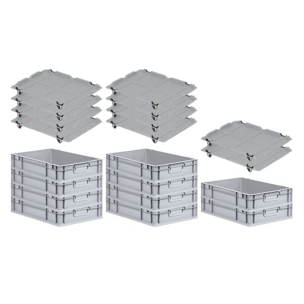 PROREGAL Spar Set 10x Eurobox Nextgen Economy Mit Auflagedeckel & 4x Schiebeschnappverschlüsse Schwarz Griffe Geschlossen HxBxT 12 x 40 x 60 cm