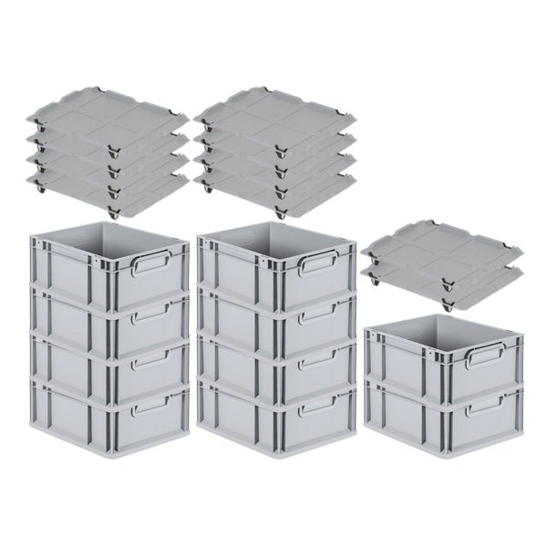 PROREGAL Spar Set 10x Eurobox Nextgen Economy Mit Auflagedeckel & 4x Schiebeschnappverschlüsse Schwarz Griffe Geschlossen HxBxT 17 x 30 x 40 cm