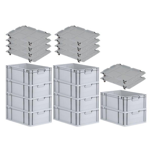 PROREGAL Spar Set 10x Eurobox Nextgen Economy Mit Auflagedeckel & 4x Schiebeschnappverschlüsse Schwarz Griffe Geschlossen HxBxT 22 x 40 x 60 cm