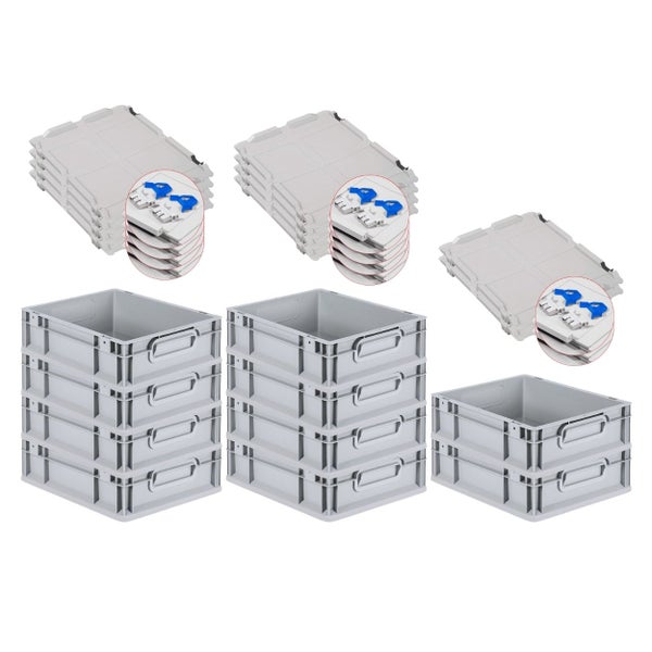 PROREGAL Spar Set 10x Eurobox Nextgen Economy Mit Scharnierdeckel & Blauen Schiebeschnappverschlüsse Griffe Geschlossen HxBxT 12 x 30 x 40 cm 11 Liter