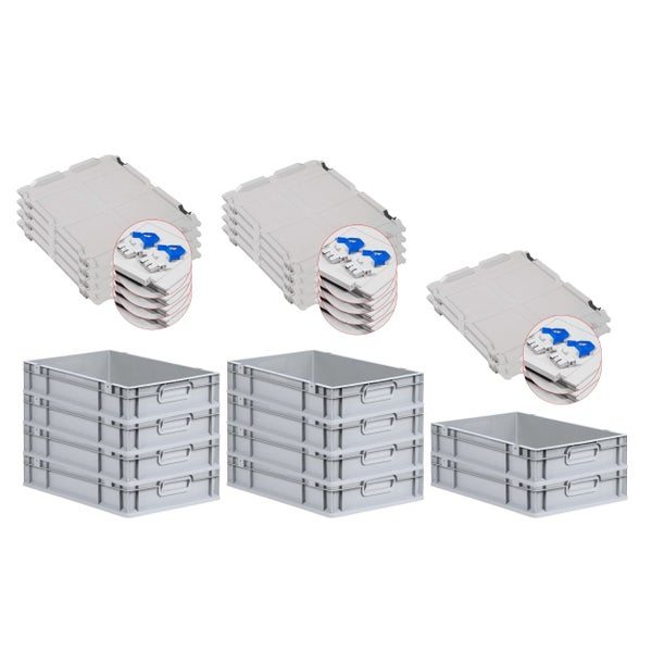 PROREGAL Spar Set 10x Eurobox Nextgen Economy Mit Scharnierdeckel & Blauen Schiebeschnappverschlüsse Griffe Geschlossen HxBxT 12 x 40 x 60 cm 23 Liter
