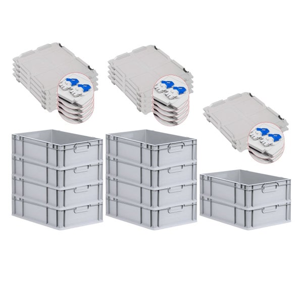 PROREGAL Spar Set 10x Eurobox Nextgen Economy Mit Scharnierdeckel & Blauen Schiebeschnappverschlüsse Griffe Geschlossen HxBxT 17 x 40 x 60 cm 34 Liter