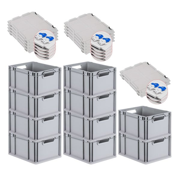 PROREGAL Spar Set 10x Eurobox Nextgen Economy Mit Scharnierdeckel & Blauen Schiebeschnappverschlüssen Griffe Offen HxBxT 22 x 30 x 40 cm 20 Liter