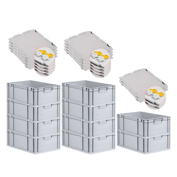 PROREGAL Spar Set 10x Eurobox Nextgen Economy Mit Scharnierdeckel & Gelben Schiebeschnappverschlüsse Griffe Geschlossen HxBxT 22 x 40 x 60 cm 44 Liter