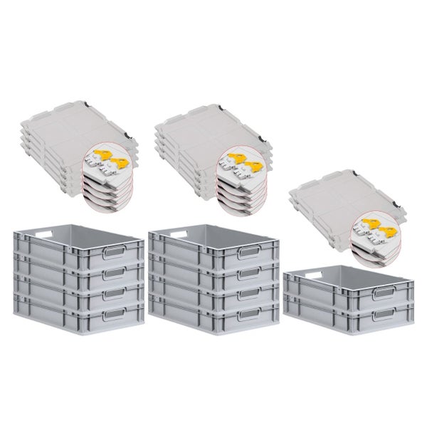 PROREGAL Spar Set 10x Eurobox Nextgen Economy Mit Scharnierdeckel & Gelben Schiebeschnappverschlüssen Griffe Offen HxBxT 12 x 40 x 60 cm 23 Liter