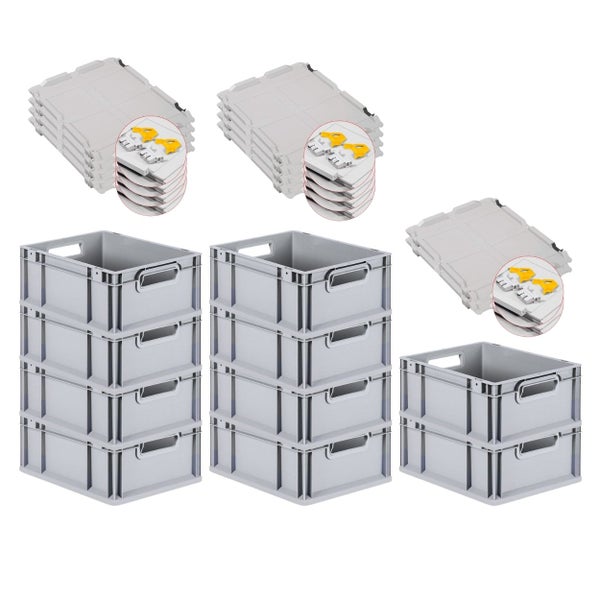PROREGAL Spar Set 10x Eurobox Nextgen Economy Mit Scharnierdeckel & Gelben Schiebeschnappverschlüssen Griffe Offen HxBxT 17 x 30 x 40 cm 16 Liter