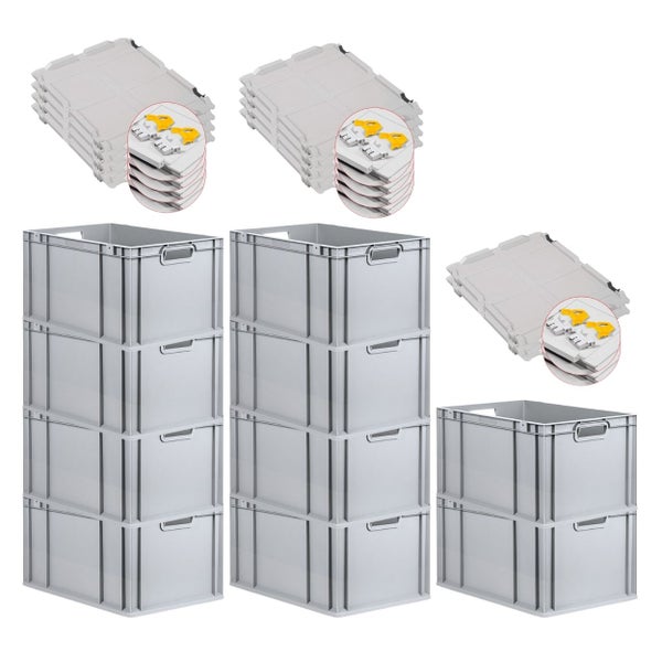PROREGAL Spar Set 10x Eurobox Nextgen Economy Mit Scharnierdeckel & Gelben Schiebeschnappverschlüssen Griffe Offen HxBxT 32 x 40 x 60 cm 65 Liter