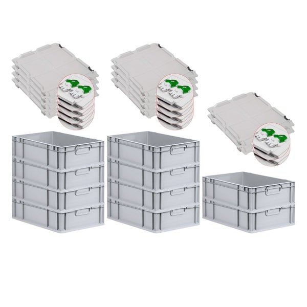 PROREGAL Spar Set 10x Eurobox Nextgen Economy Mit Scharnierdeckel & Grünen Schiebeschnappverschlüssen Griffe Geschlossen HxBxT 17 x 40 x 60 cm