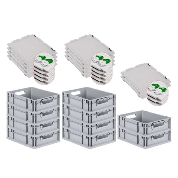 PROREGAL Spar Set 10x Eurobox Nextgen Economy Mit Scharnierdeckel & Grünen Schiebeschnappverschlüssen Griffe Offen HxBxT 12 x 30 x 40 cm 11 Liter