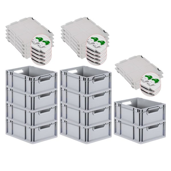 PROREGAL Spar Set 10x Eurobox Nextgen Economy Mit Scharnierdeckel & Grünen Schiebeschnappverschlüssen Griffe Offen HxBxT 17 x 30 x 40 cm 16 Liter