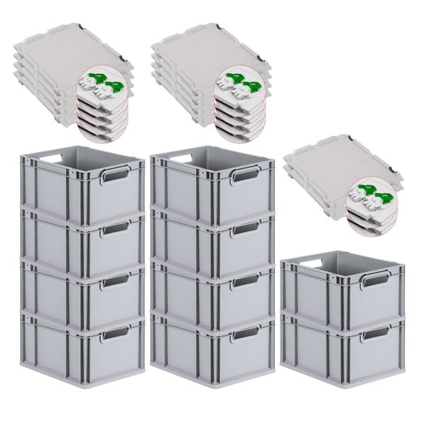 PROREGAL Spar Set 10x Eurobox Nextgen Economy Mit Scharnierdeckel & Grünen Schiebeschnappverschlüssen Griffe Offen HxBxT 22 x 30 x 40 cm 20 Liter