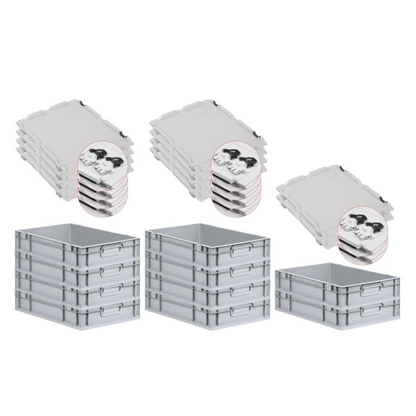 PROREGAL Spar Set 10x Eurobox Nextgen Economy Mit Scharnierdeckel & Schwarzen Schiebeschnappverschlüssen Griffe Geschlossen HxBxT 12 x 40 x 60 cm