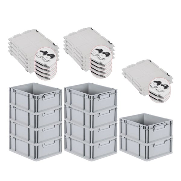 PROREGAL Spar Set 10x Eurobox Nextgen Economy Mit Scharnierdeckel & Schwarzen Schiebeschnappverschlüssen Griffe Geschlossen HxBxT 17 x 30 x 40 cm