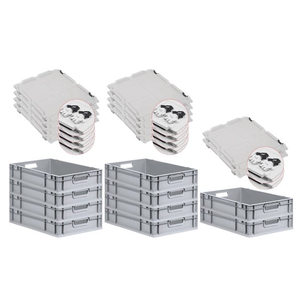 PROREGAL Spar Set 10x Eurobox Nextgen Economy Mit Scharnierdeckel & Schwarzen Schiebeschnappverschlüssen Griffe Offen HxBxT 12 x 40 x 60 cm 23 Liter