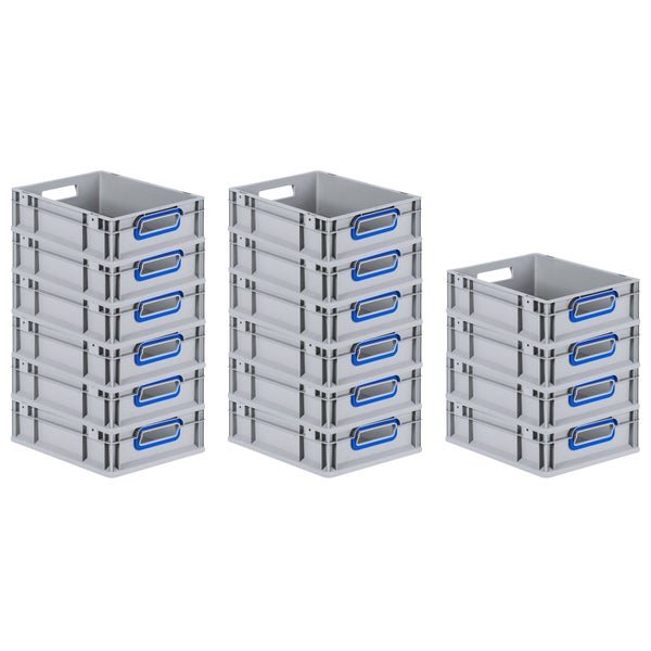 PROREGAL Spar Set 16x Eurobox Nextgen Color HxBxT 12 x 30 x 40 cm 11 Liter Griffe Blau Offen Glatter Boden Eurobehälter Transportbox