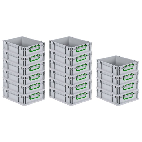 PROREGAL Spar Set 16x Eurobox Nextgen Color HxBxT 12 x 30 x 40 cm 11 Liter Griffe Grün Geschlossen Glatter Boden Eurobehälter Transportbox
