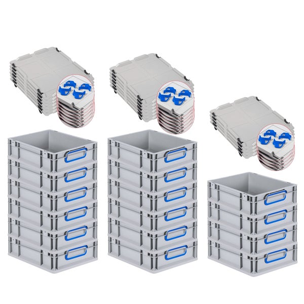 PROREGAL Spar Set 16x Eurobox Nextgen Color Mit Auflagedeckel & Schiebeschnappverschlüsse HxBxT 12 x 30 x 40 cm Griffe Blau Geschlossen Glatter Boden