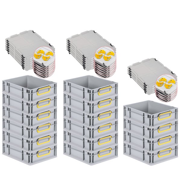 PROREGAL Spar Set 16x Eurobox Nextgen Color Mit Auflagedeckel & Schiebeschnappverschlüsse HxBxT 12 x 30 x 40 cm Griffe Gelb Geschlossen Glatter Boden