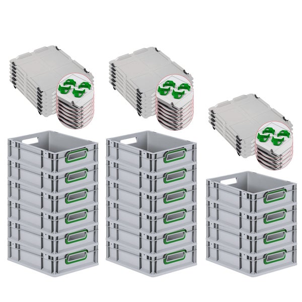 PROREGAL Spar Set 16x Eurobox Nextgen Color Mit Auflagedeckel & Schiebeschnappverschlüsse HxBxT 12 x 30 x 40 cm Griffe Grün Offen Glatter Boden
