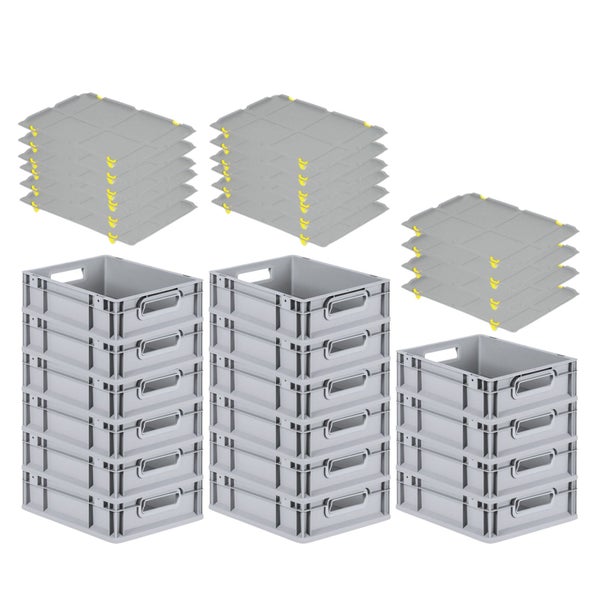 PROREGAL Spar Set 16x Eurobox Nextgen Economy Mit Auflagedeckel & 4x Schiebeschnappverschlüsse Gelb Griffe Offen HxBxT 12 x 30 x 40 cm 11 Liter