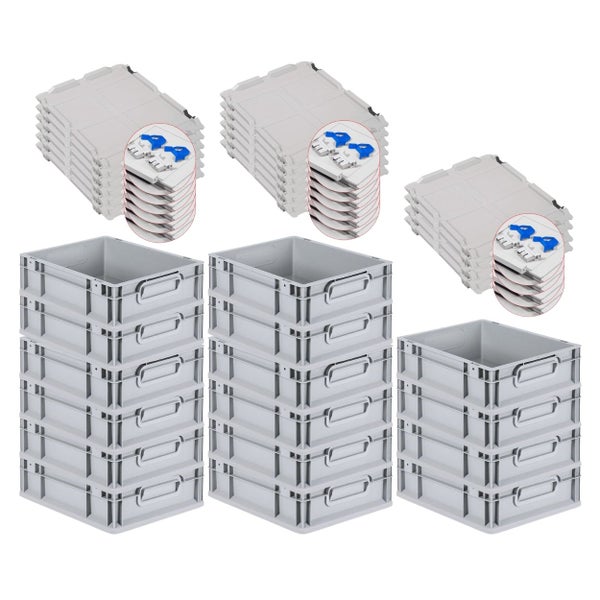PROREGAL Spar Set 16x Eurobox Nextgen Economy Mit Scharnierdeckel & Blauen Schiebeschnappverschlüsse Griffe Geschlossen HxBxT 12 x 30 x 40 cm 11 Liter