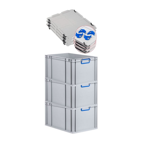 PROREGAL Spar Set 3x Eurobox Nextgen Color Mit Auflagedeckel & Schiebeschnappverschlüsse HxBxT 32 x 40 x 60 cm Griffe Blau Verstärkter Boden